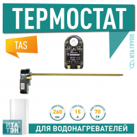 Стержневой термостат наиболее распространенный вид терморегулятора. Поддерживает температуру в нужном интервале в автоматическом режиме. По достижении максимальной температуры в термостате срабатывает реле, которое отключает нагрев ТЭНа и автоматически включает его при понижении температуры по достижению нижней границы температурного диапазона. Термостат серии TAS предназначен для контроля температуры воды в водонагревателе. Использовать термостат возможно в сетях переменного тока до 250В с силой тока 15А.